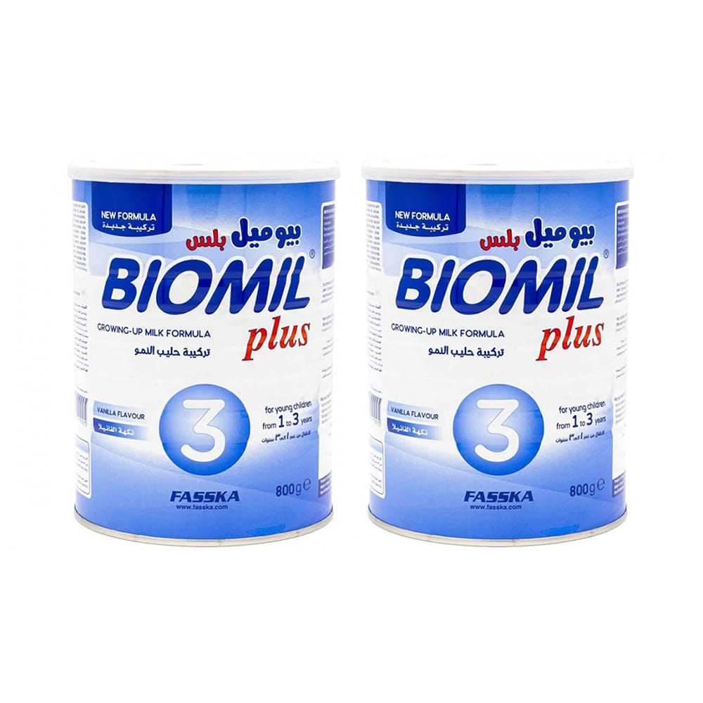 حليب بيوميل بلس رقم 3 عبوتان 800 جم تركيبة غذائية مناسبة للأطفال في المرحلة العمرية اللاحقة وتساعد العبوتان على توفير احتياج يومي عملي واقتصادي داخل المنزل مناسب للأطفال في الفئة العمرية المخصصة له ضمن روتين التغذية اليومي