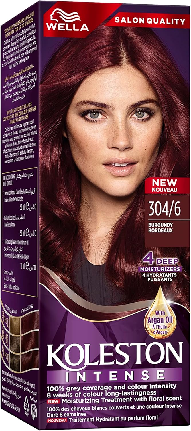 صبغة شعر ويلا كولستون إنتنس بزيت الأرغان – خمري 304/6 – لون جريء ولمعان قوي