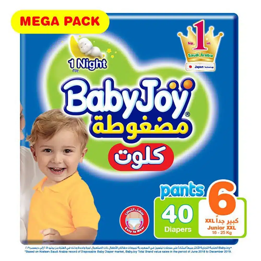حفاضة بيبي جوي كلوت حشوة ماسية مضغوطة جونيور مقاس 6 – 40 حبة