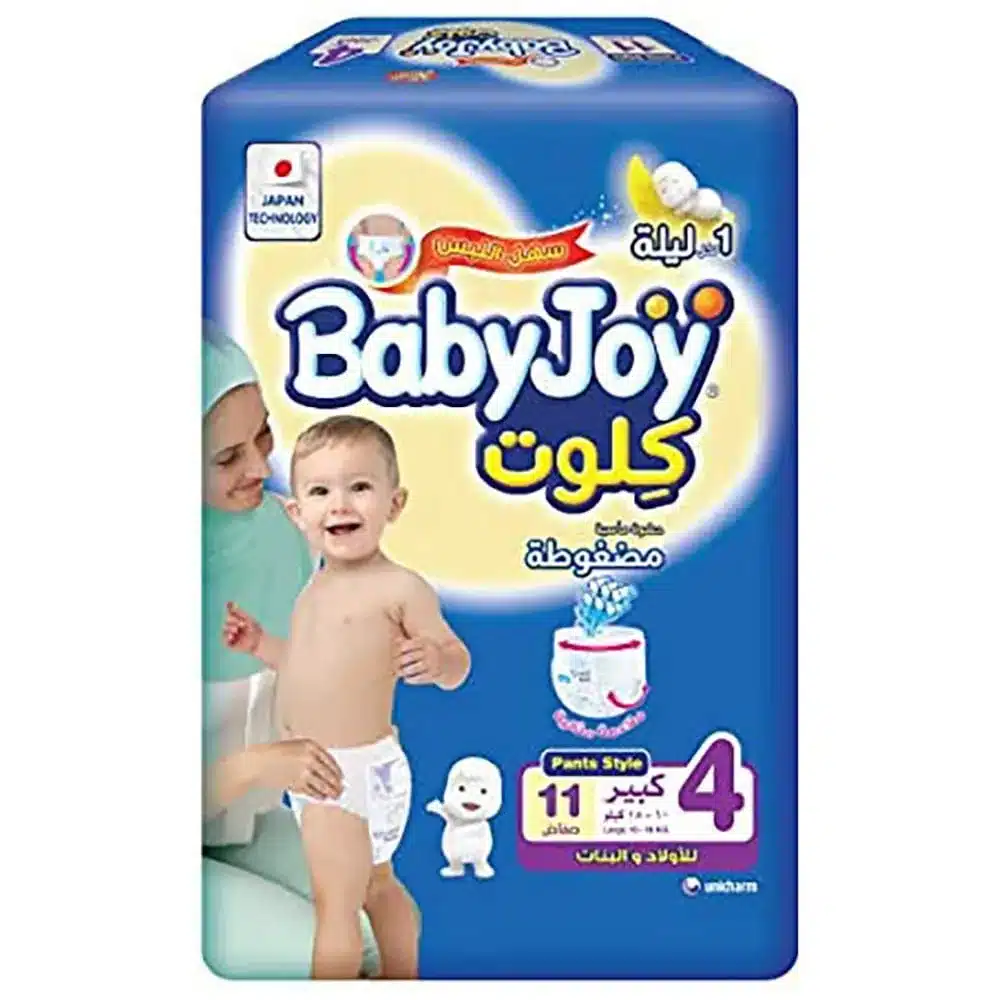 - بيبي جوي كلوت سهل اللبس مثل الكلوت العادي ومناسب للإستخدام عندما يبدا الطفل بالحبو وتزداد حركته ويصبح تغيير الحفاض صعباً.