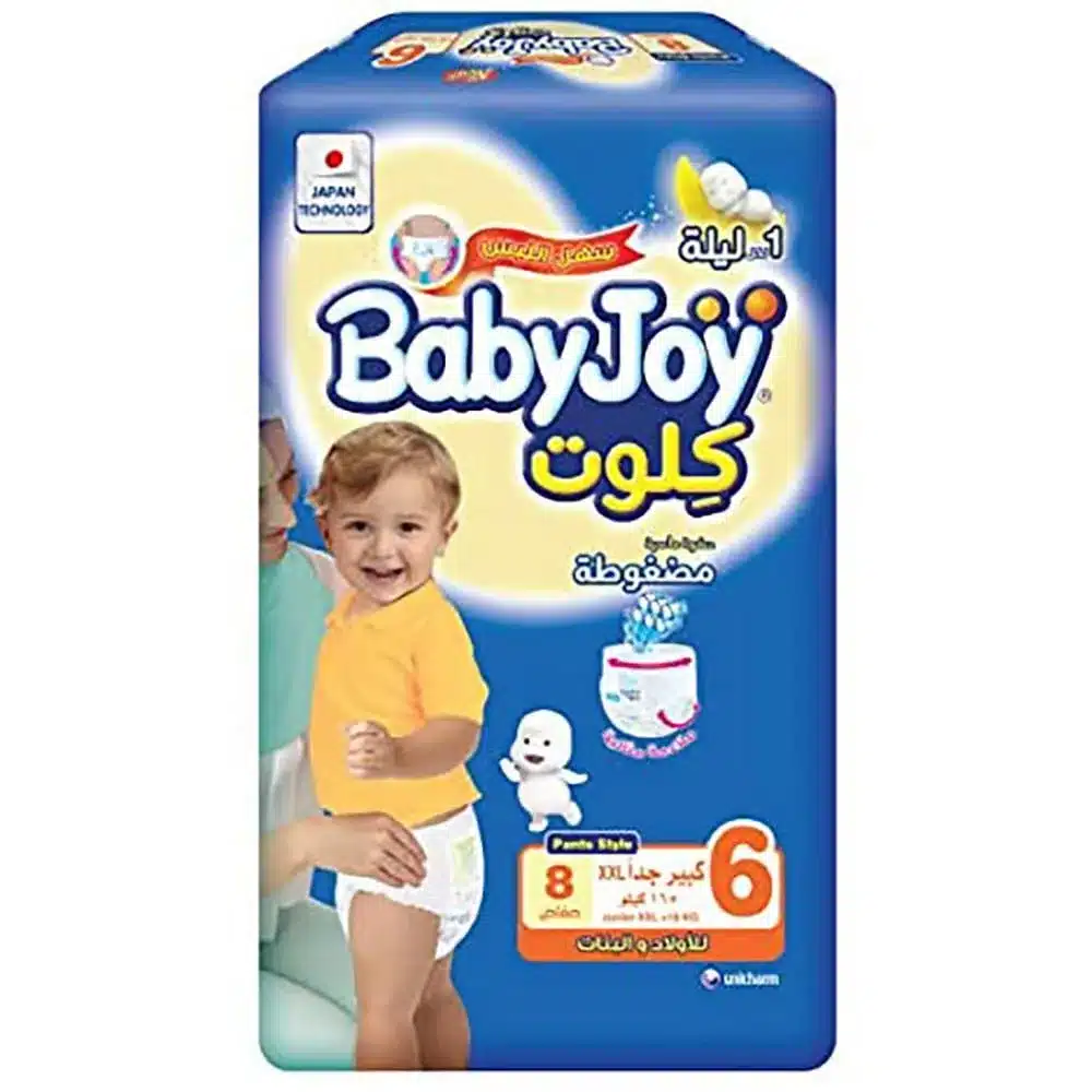 حفاضة بيبي جوي كلوت حشوة ماسية مضغوطة جونيور مقاس 6 – 8 حفاضة
