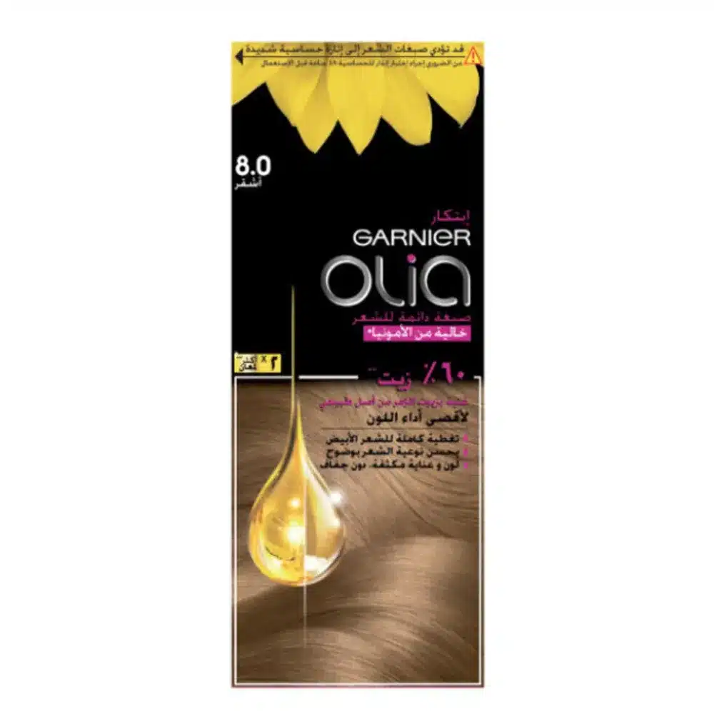 - جارنييه أوليا صبغة دائمة للشعر خالية من الأمونيا لون أشقر 8.0 – 1 عبوة