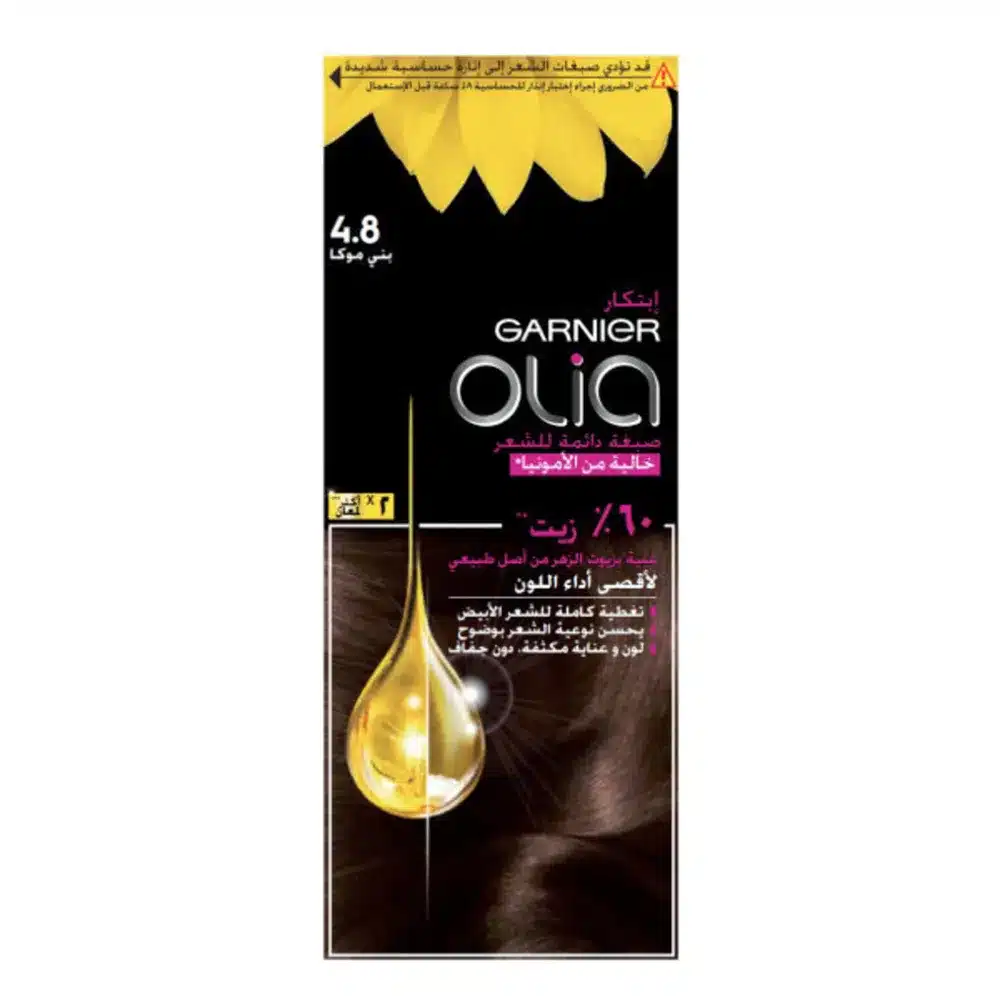 - جارنييه اوليا صبغة دائمة للشعر خالية من الامونيا لون بني موكا 4.8 – 1 عبوة