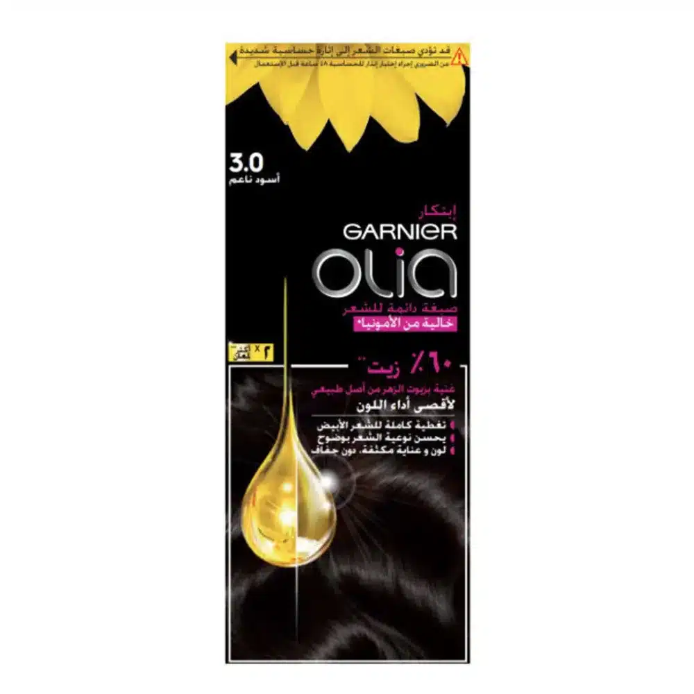 غارنييه صبغة شعر اوليا خالية من الامونيا 3.0 اسود ناعم