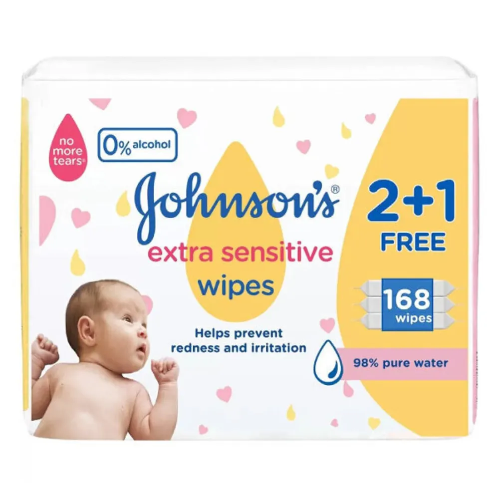 جونسون مناديل اطفال مبللة فائقة الحساسية 56 ق 2+1 مجانا
