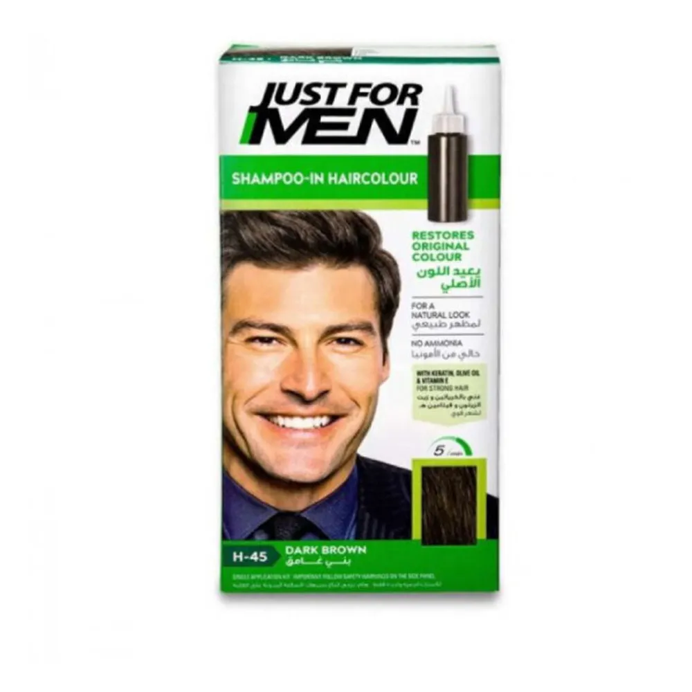 صبغة جست فور من باللون البني الغامق 40 مل تساعد على تجديد لون الشعر أو تغطية الشعر الأبيض بنتيجة عملية ومظهر طبيعي كما تناسب الرجال الباحثين عن حل سريع وسهل الاستخدام داخل المنزل
