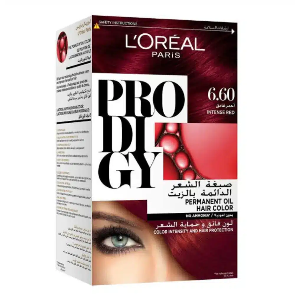صبغة لوريال بروديجي بدون أمونيا بدرجة أحمر غامق 66 تمنح الشعر لونًا غنيًا وجذابًا بلمعة واضحة وطابع أنثوي مميز كما تناسب من تفضل الألوان الجريئة مع تركيبة خالية من الأمونيا