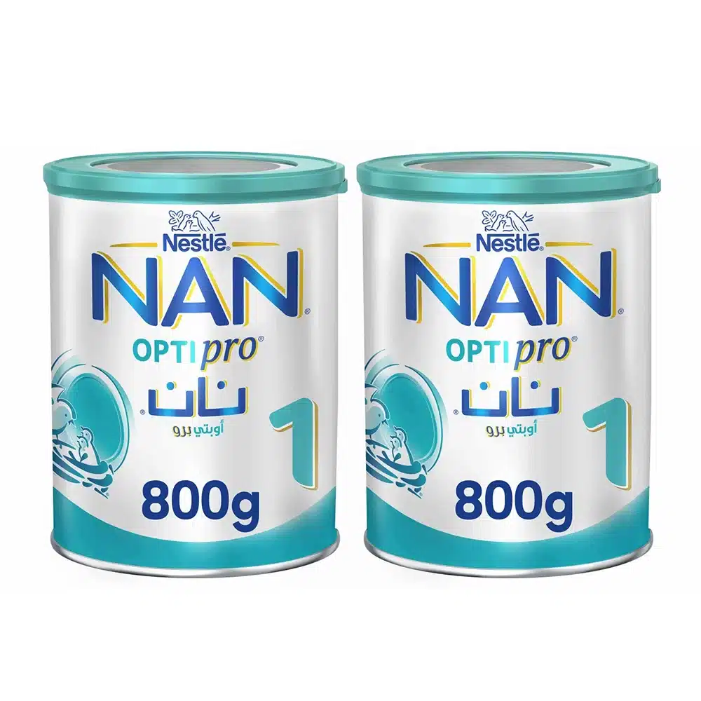 حليب نان رقم 1 عبوتان 800 جم مناسب للمرحلة الأولى من تغذية الطفل كما يتميز بعرض اقتصادي وعبوات عملية للاستخدام المنتظم وفق الإرشادات الغذائية أو توصية الطبيب المختص