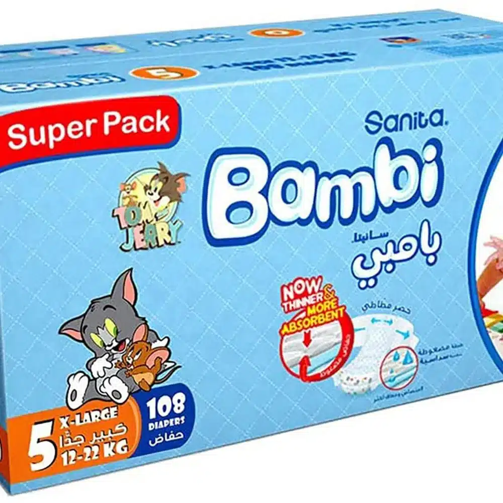 سانيتا بامبي الصندوق السوبر مقاس 5 كبير جدا – 108 حفاض