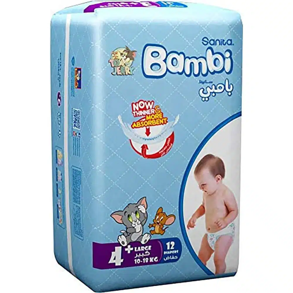 - حفائض سانيتا بامبي رقم +4 – 12 حفاضة