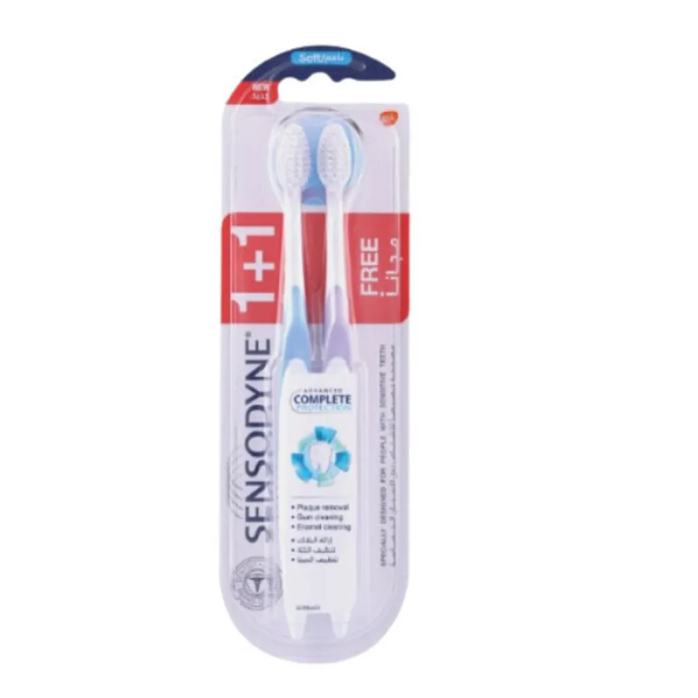 فرشاة سنسوداين للحساسية واللثة بشعيرات ناعمة تساعد على تنظيف الأسنان بلطف دون إزعاج اللثة الحساسة وتأتي بعرض 1+1 عملي مناسب للعناية اليومية بالفم
