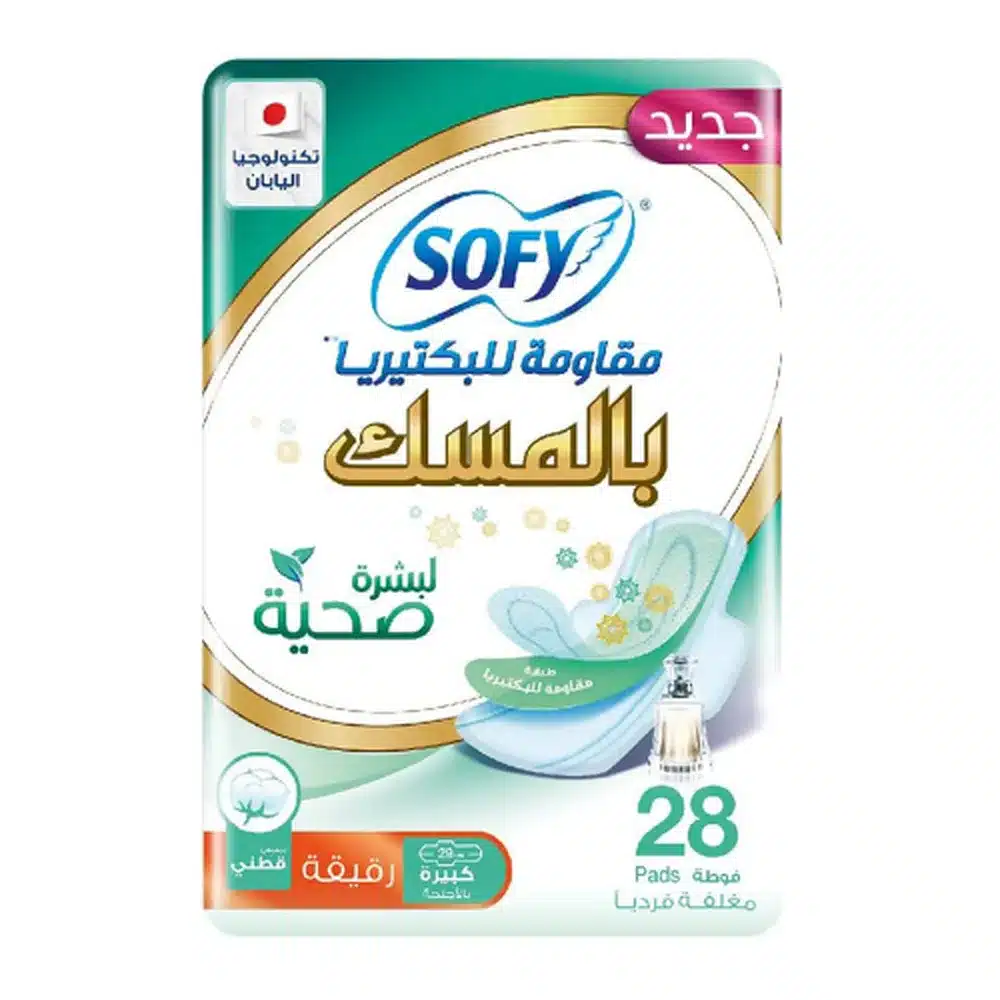 سوفي حفاضات نسائية مقاومة للبكتريا بالمسك رقيقة كبير بالاجنحة 28 فوطة