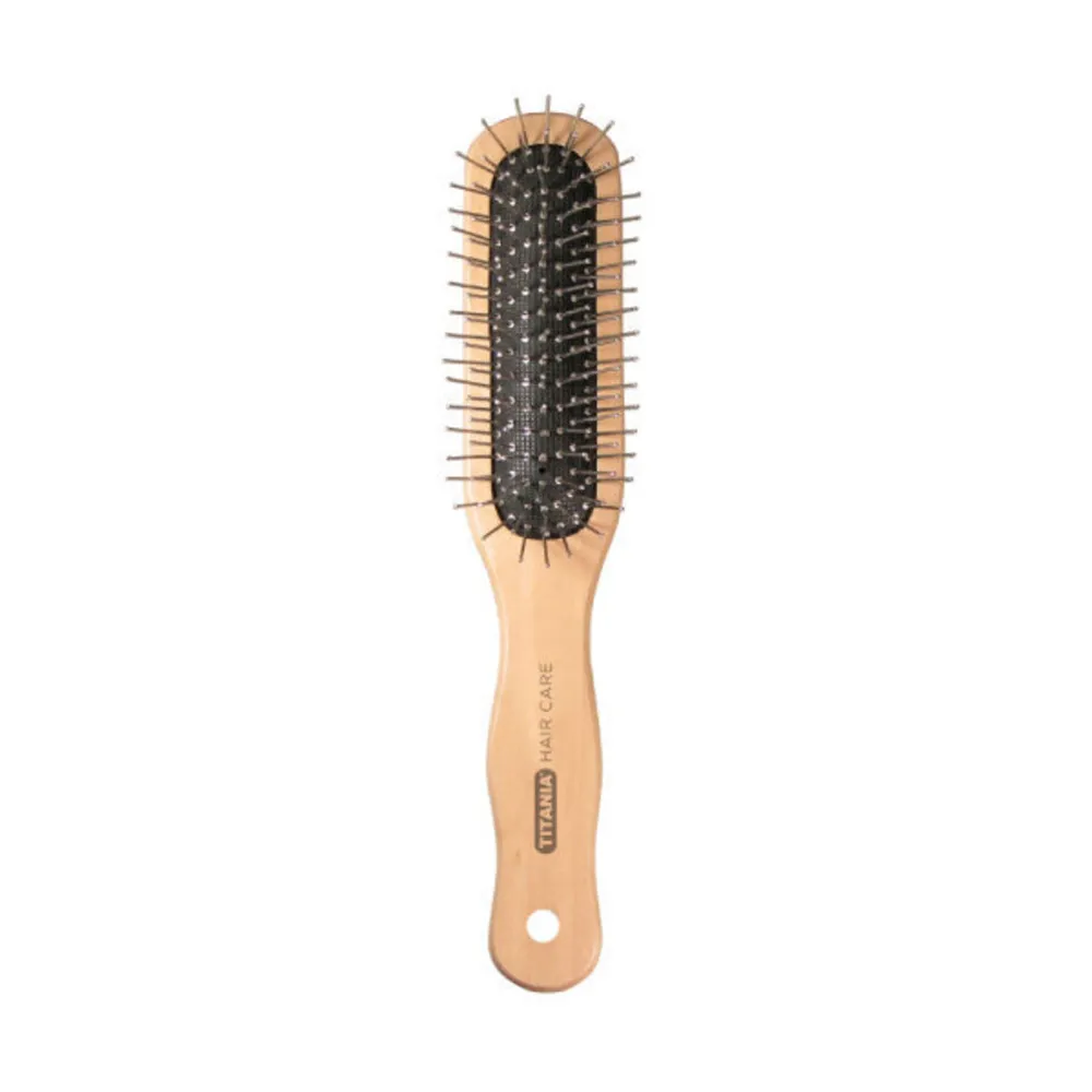 فرشاة شعر تيتانيا 2862 مصممة لتسريح الشعر بسهولة وتقليل التشابك والهيشان وتساعد على توزيع الشعر بشكل متساوٍ مع استخدام يومي مريح مناسبة للعناية اليومية بجميع أنواع الشعر وتمنحك تصفيفًا أسرع ومظهرًا أكثر ترتيبًا