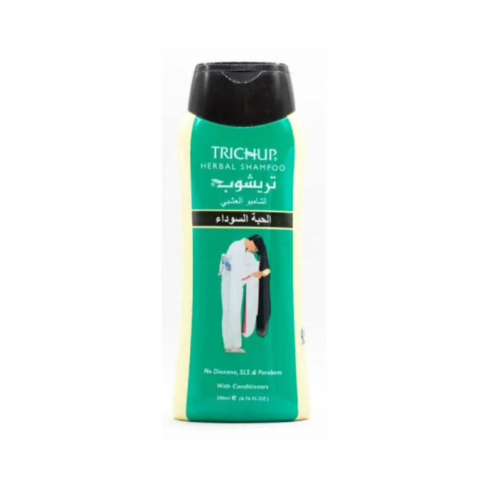 شامبو تريشوب بالحبة السوداء 200 مل يساعد على تنظيف الشعر وفروة الرأس مع عناية عشبية تمنح الخصلات نعومة ولمعانًا أوضح كما يناسب الشعر الجاف أو الضعيف ضمن روتين العناية اليومي للحصول على شعر بمظهر صحي